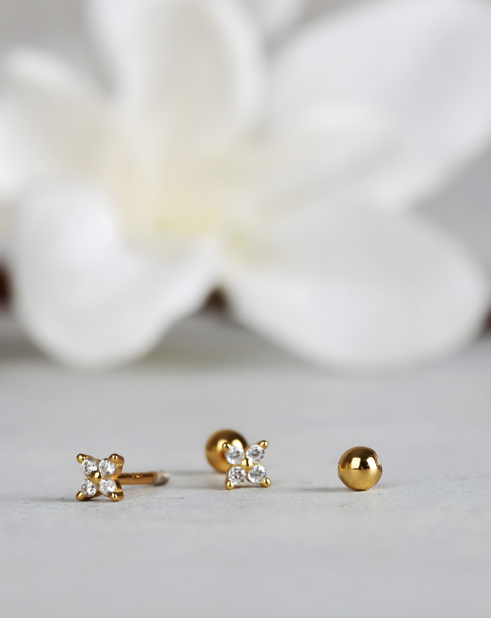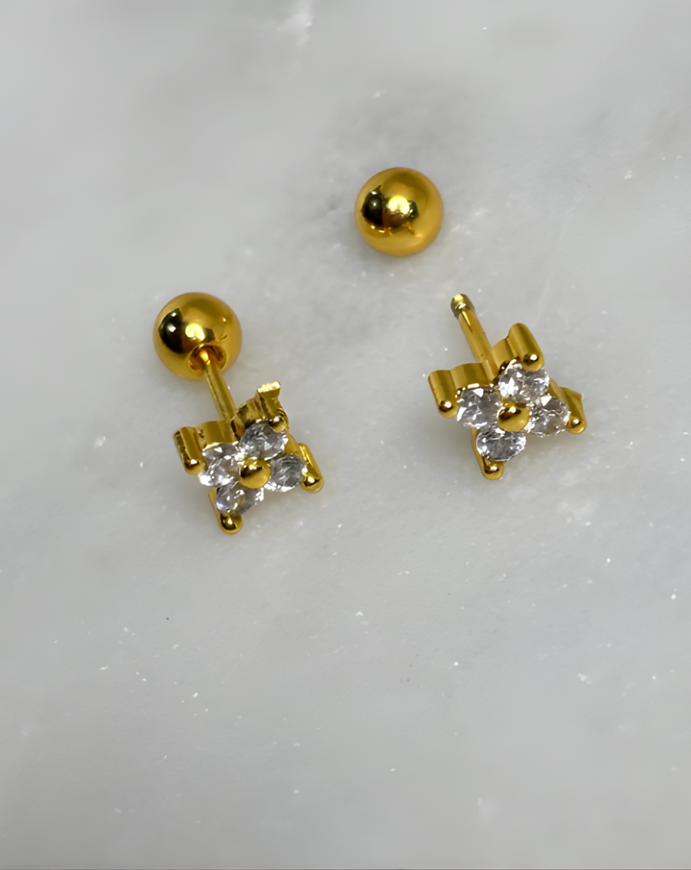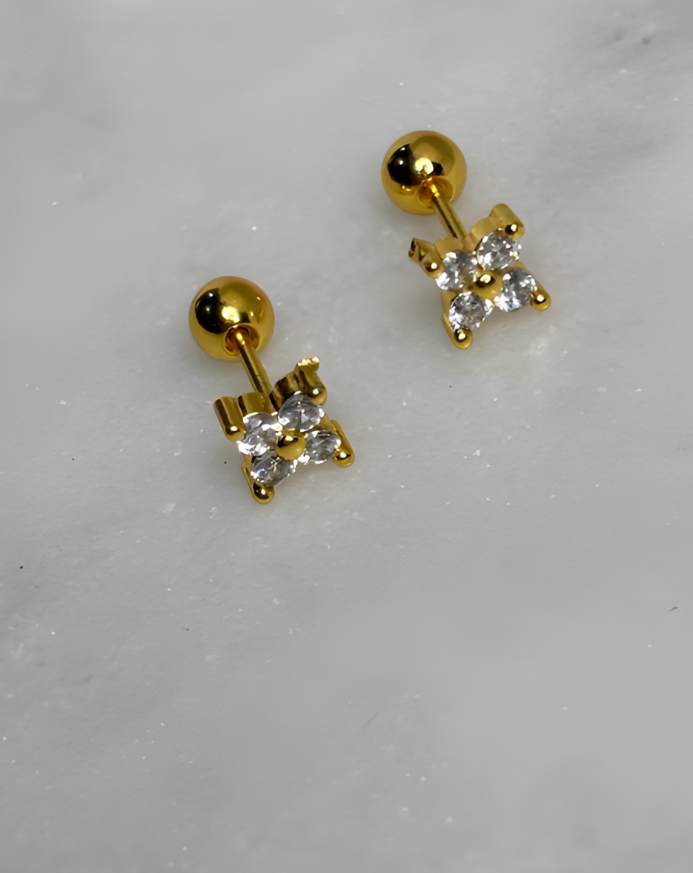 Add a subtle sparkle to your jewellery collection with these 18K Gold Plated Crystal Stud Earrings. Designed with a delicate four-stone motif, these studs reflect timeless elegance with a modern minimal touch. The high-shine 18K gold plating enhances the brilliance of the clear crystals, while the smooth screw-back closure ensures a secure and comfortable fit.