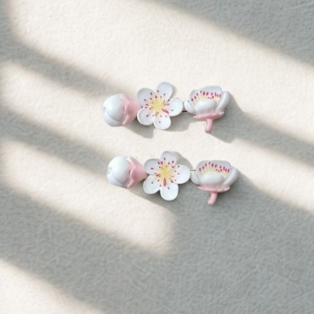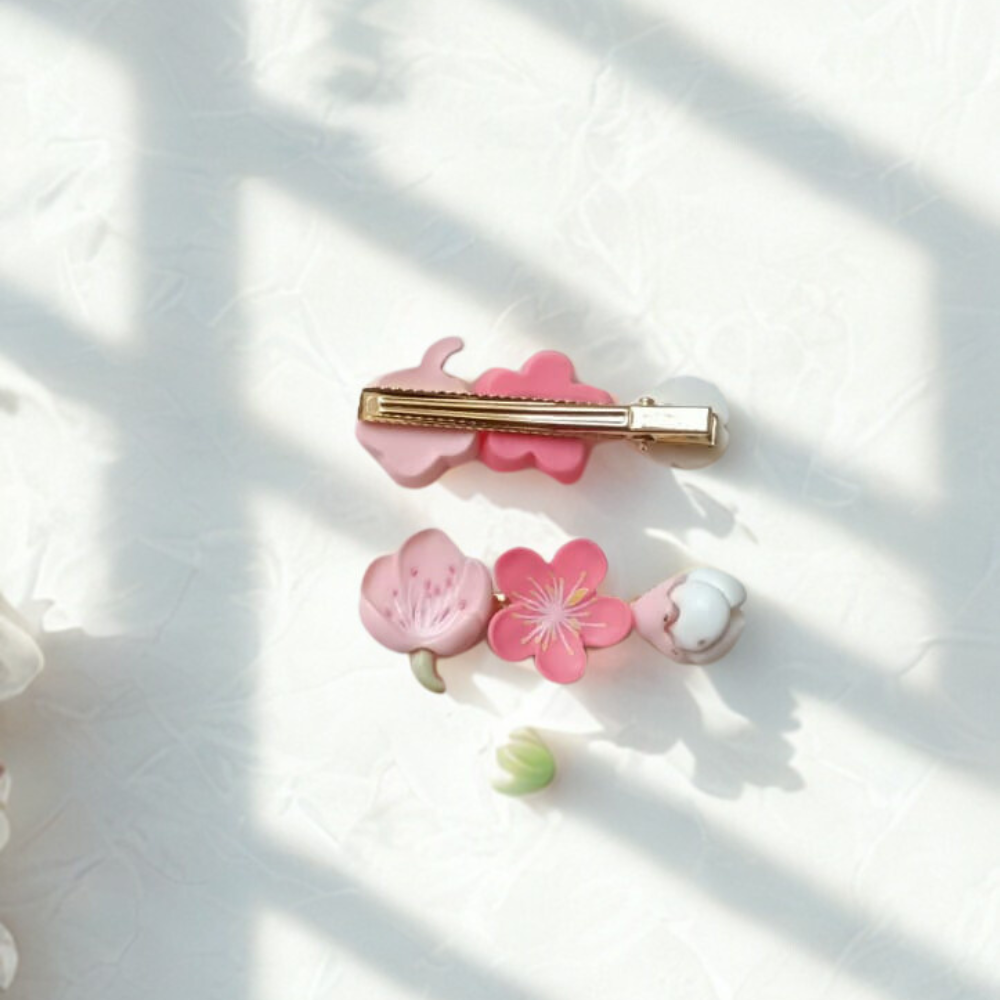 Add a delicate touch to your hairstyle with this charming floral blossom hair clip. Designed with soft pink and white flowers and a sturdy gold-tone clip, it offers both elegance and a secure hold. Lightweight and stylish, it’s perfect for everyday wear, parties, or special occasions.