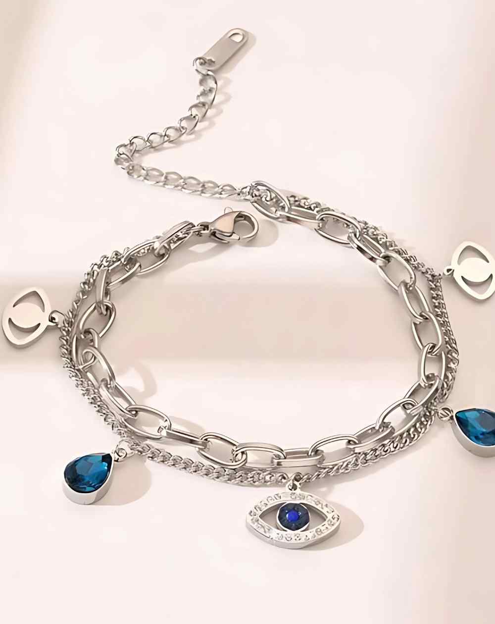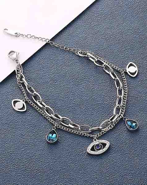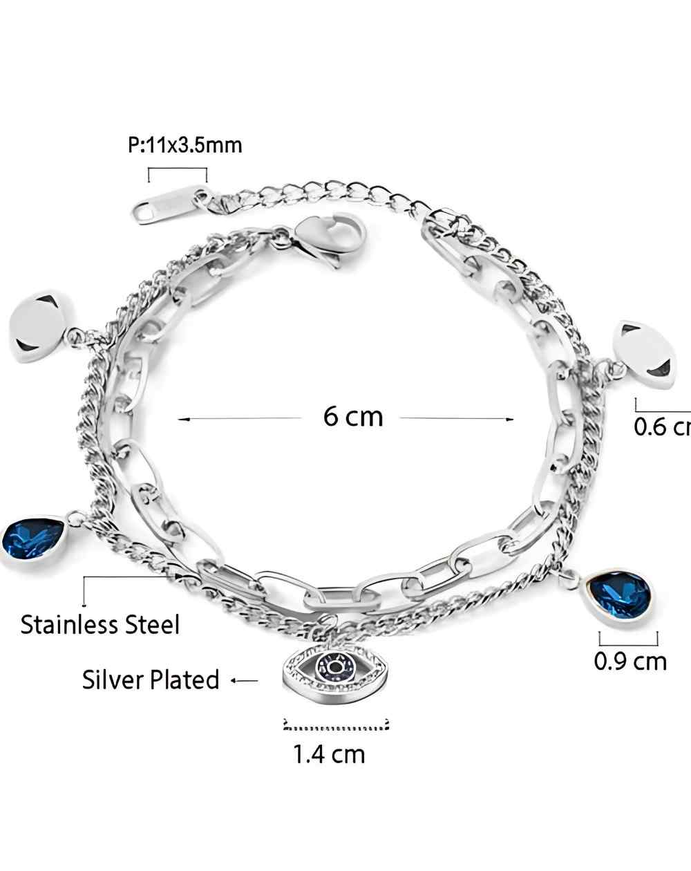 Crystal Studded Evil Eye Bracelet Anti Tarnish Silver Plated Stainless Steel